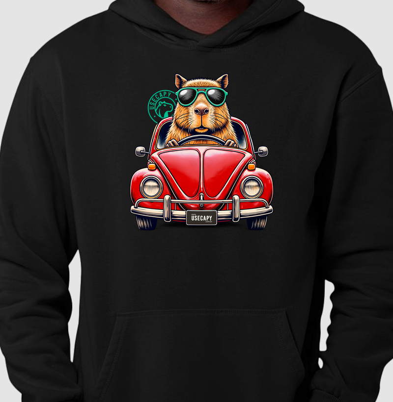 Adicione um toque de estilo e diversão ao seu guarda-roupa com a estampa Fusca Capy! Nossa capivara dirige seu icônico fusca com todo o charme e descontração, criando uma peça única e cheia de personalidade. Produzida com materiais de alta qualidade, esta estampa é perfeita para quem busca conforto e originalidade. Ideal para presentear ou para expressar seu estilo autêntico em qualquer ocasião!