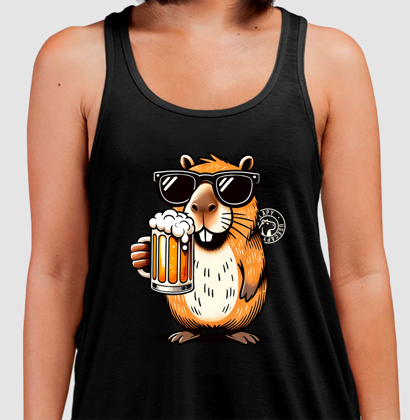 Brinde com estilo e diversão com nossa estampa exclusiva! Este design traz uma capivara descolada, com óculos escuros e uma caneca de chopp, perfeita para quem adora combinar bom humor e atitude no dia a dia. Ideal para momentos casuais e para quem quer se destacar com autenticidade, esta estampa é feita com materiais de alta qualidade, garantindo conforto e originalidade. Vista-se com a leveza de quem sabe aproveitar cada momento!